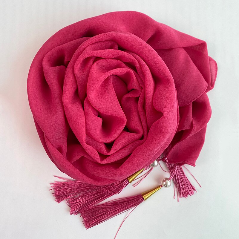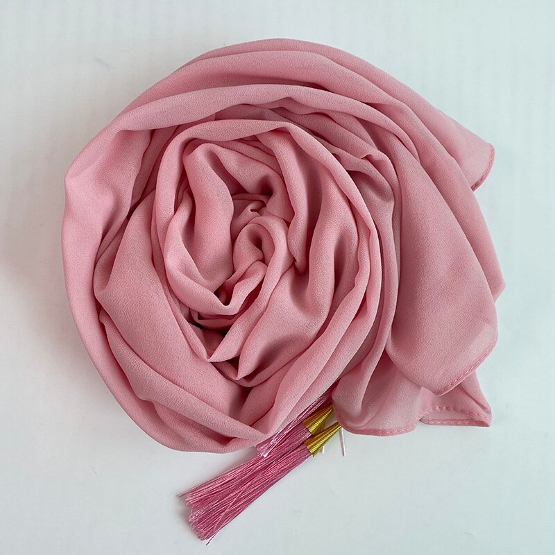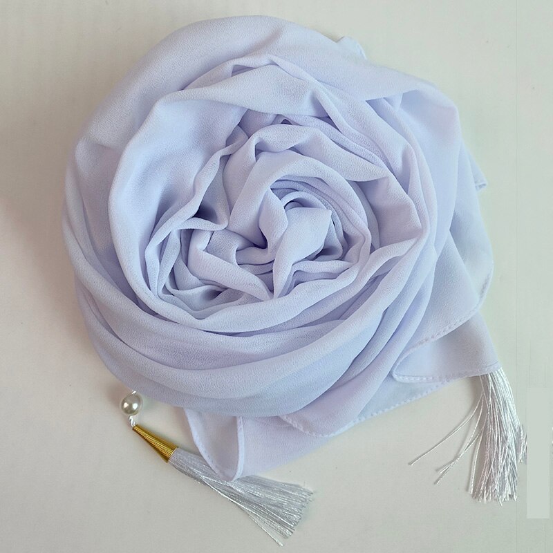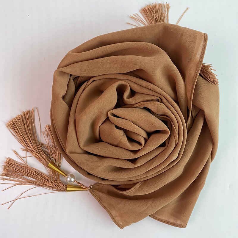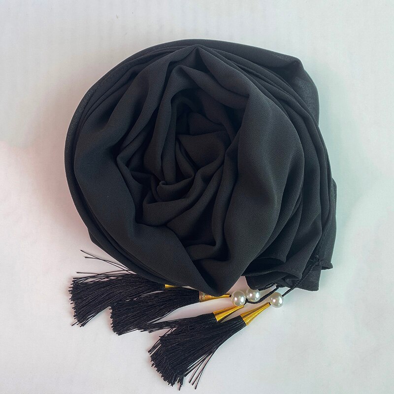 1 Pc Bubble Chiffon Solider Kleur Sjaal Lange Soft Wrap Sjaal Sjaals Femme Bufandas Kralen Parels Hijaabs Kwastje Sjaal