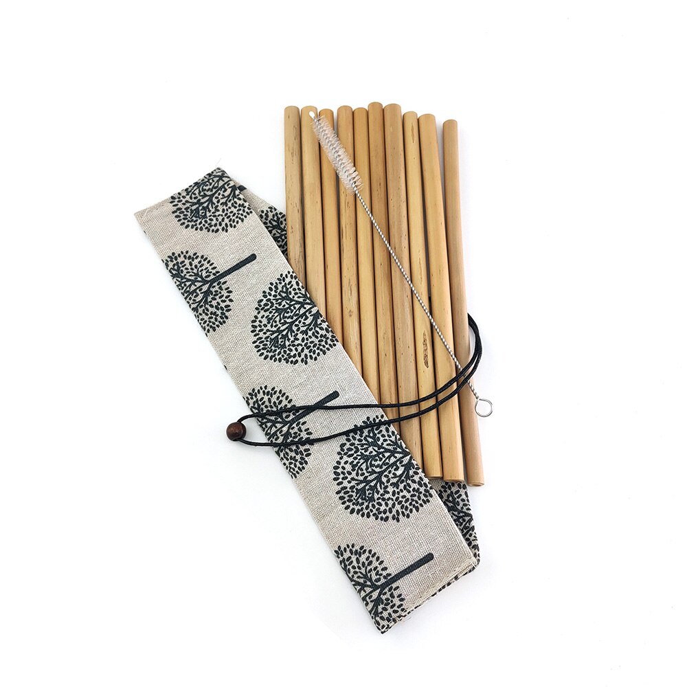 10 Stks/partij Natuurlijke Bamboe Rietje Herbruikbare Bar Bamboe Rietjes Set Travelling Stro Set Met Borstel Cane Rietjes