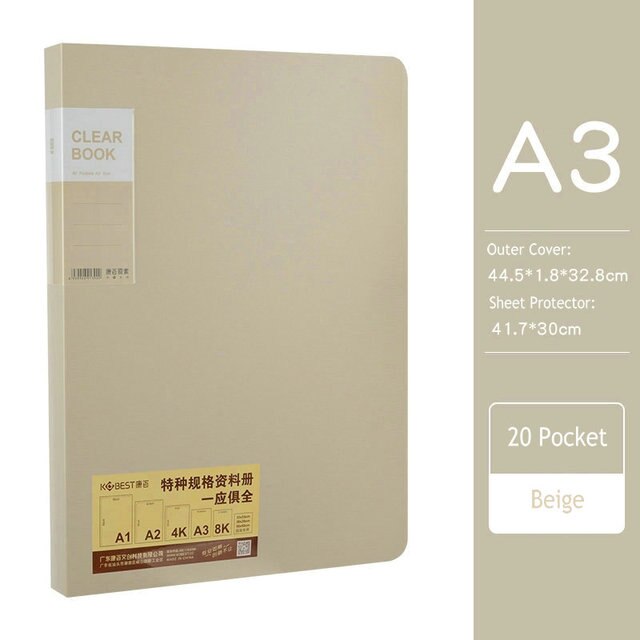 A3 20/30/40/60 Pocket Map Foto Album Document Zak 8K Map Art Werk Collection Organizer kantoor Student Leveringen