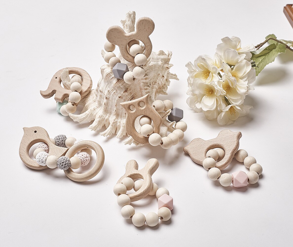 Baby Speelgoed 0 12 Maanden Houten Bijtring Kralen Hout Ambachten Ring Gegraveerd Bead Baby Bijtring Houten Speelgoed Voor Baby Rammelaar