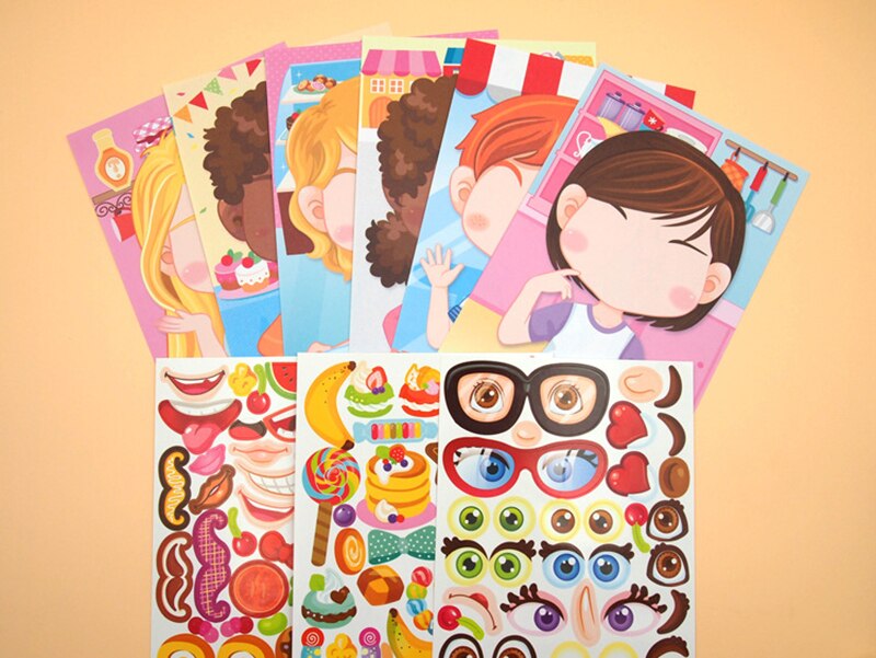 Cartoon Gezicht Verandering Stickers Diy Stickers Puzzel Games Maken Gezicht Monteren Jigsaw Baby Erkenning Training Onderwijs Speelgoed