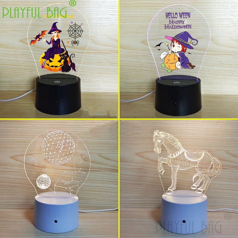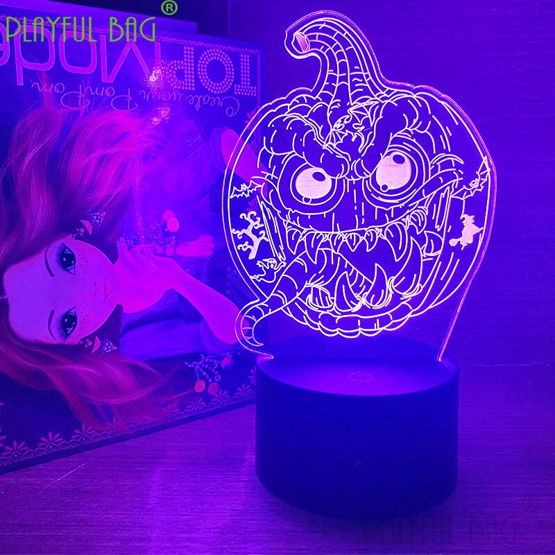 Creatieve Halloween 3D Nachtlampje Grappige Pompoen Led Tafellamp Kleurrijke Touch Afstandsbediening Hand Lamp Vd38