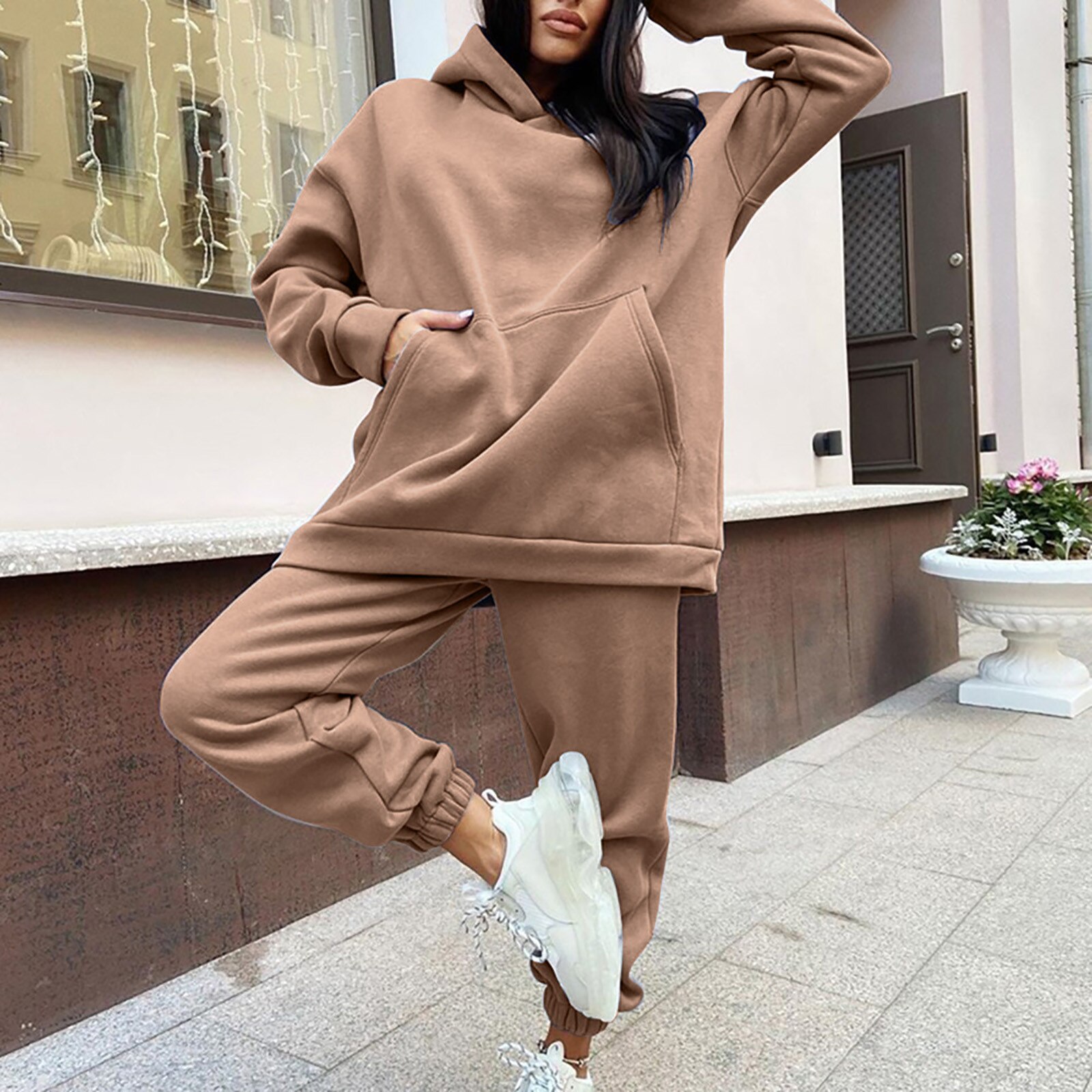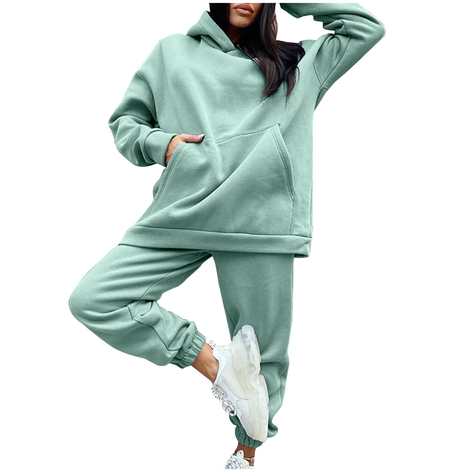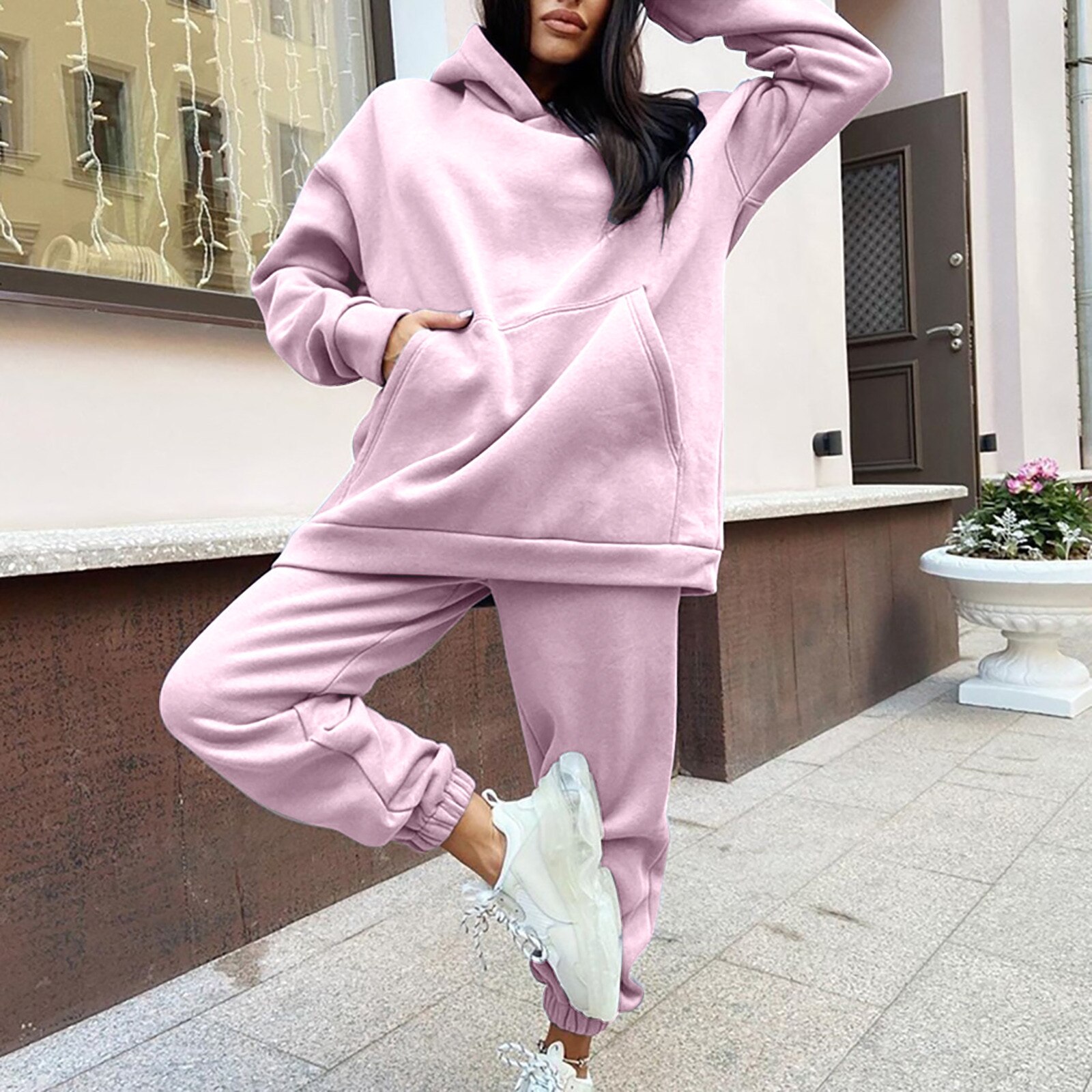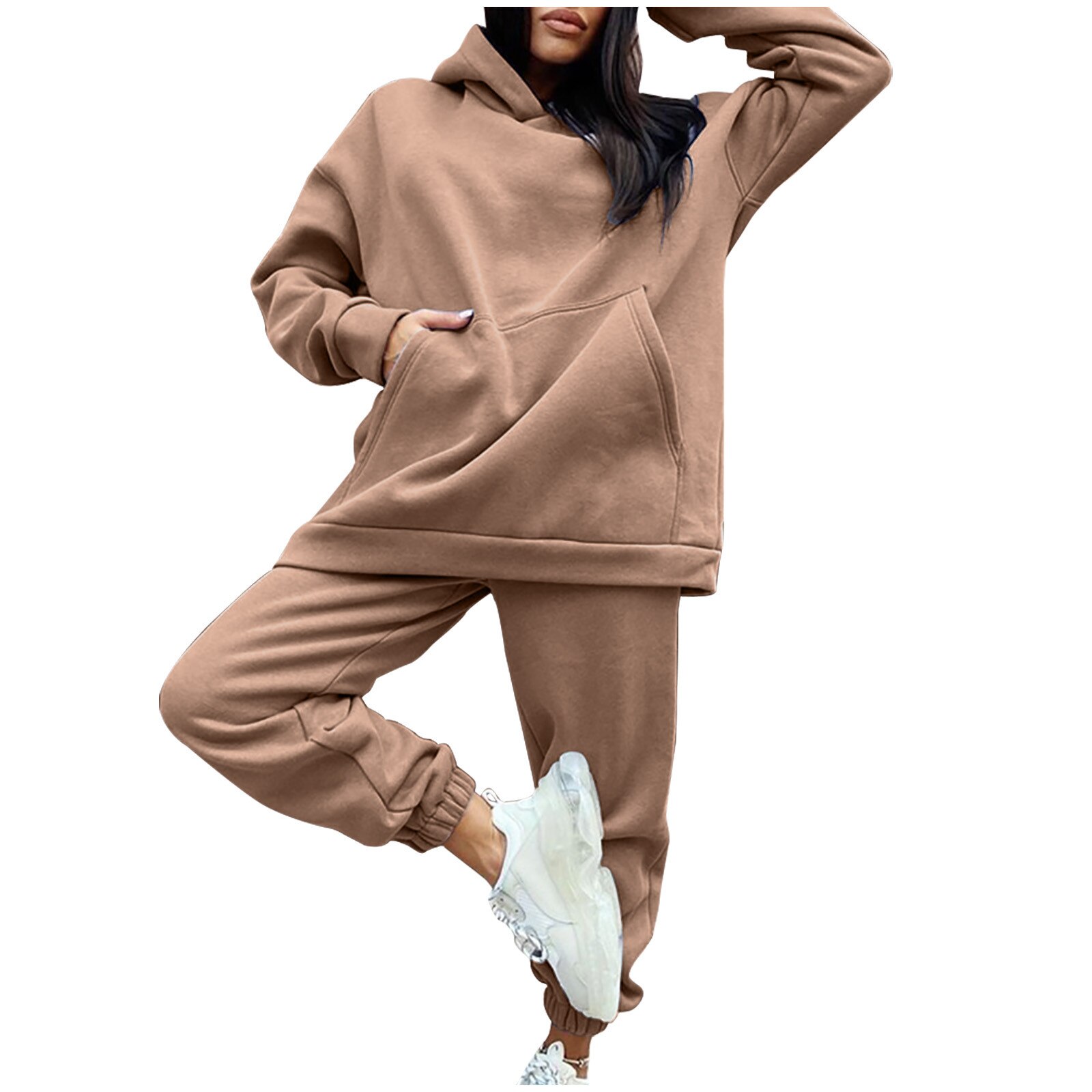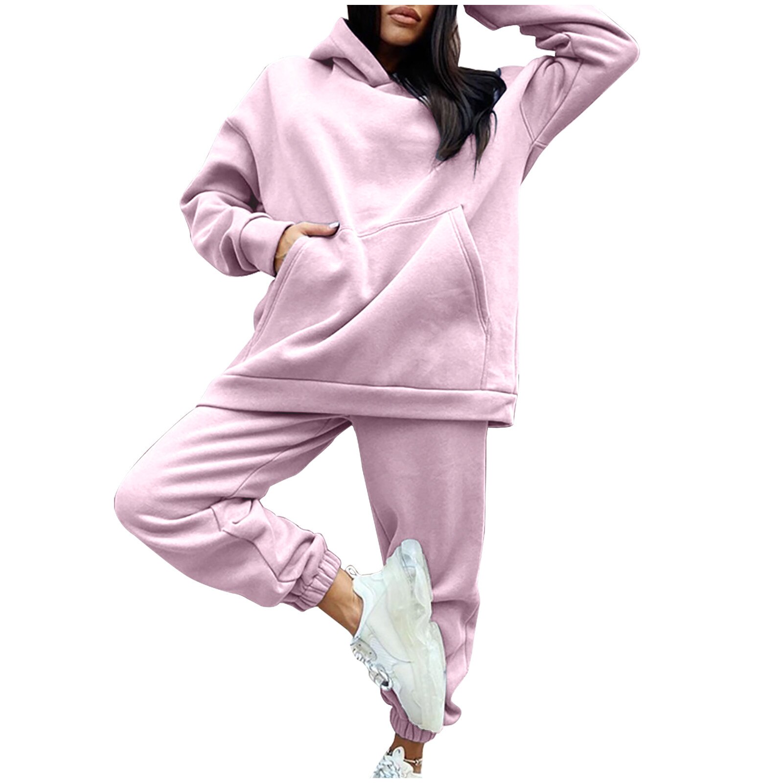 Dames Fleece Mode Tweedelige Set Outfit Casual Sport Pak Hooded Trui Effen Kleur Trui Comfort Lounge Wear Trainingspakken