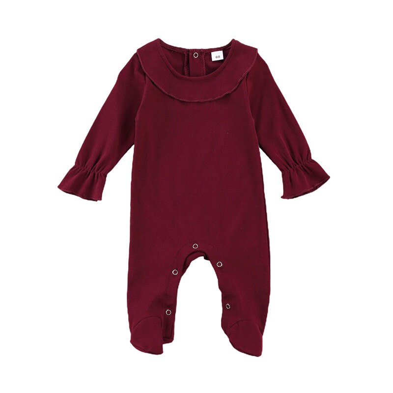 Herfst Unisex Baby Jongens Meisje Footed Romper Schattige Pop Kraag Lange Mouwen Effen Kleur Een Stuk Jumpsuit casual Kleding