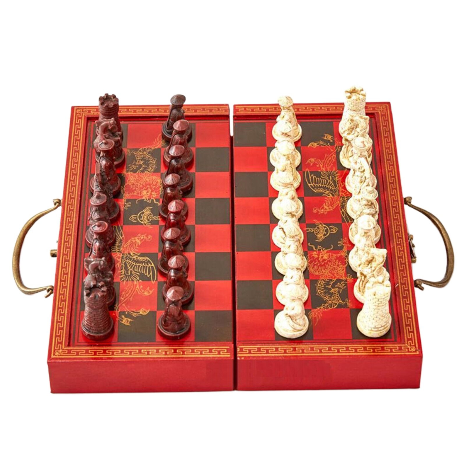 Houten Gesneden Schaakspel Internationale Schaken Folable Board Reizen Draagbare