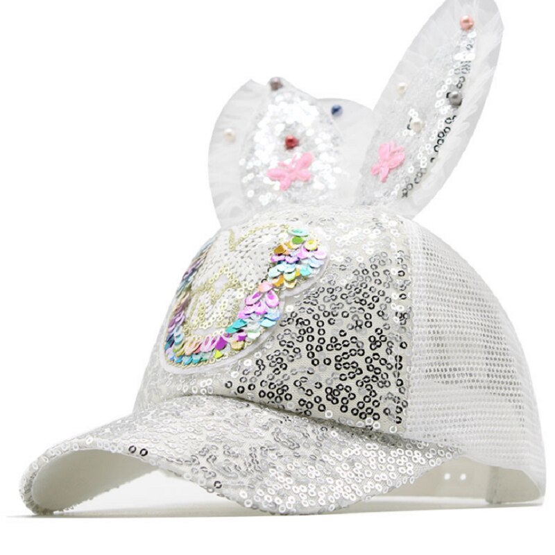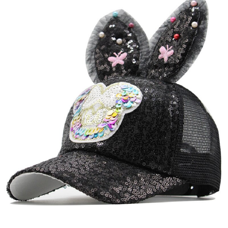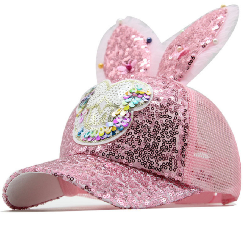 Kinderen Mesh Cap Lente Zomer Kinderen Baseball Cap Meisjes Casquatte Hip Hop Caps Konijn Oor Parel Grote Boog Kids zonnehoed