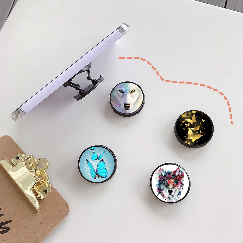 Luxe Bloem Wolf Opvouwbare Telefoon Grip Vinger Ring Telefoon Houder Telefoon Beugel Voor Iphone Standhouder Telefoon Houders