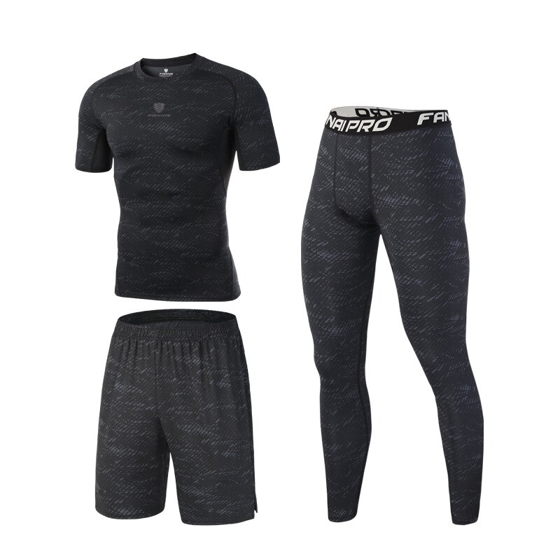 Mannen Drie Stuk Sport Past Compressie Sneldrogende Skinny Fitness Kleding Gym Fitness Running Jogging Past Strakke kleding