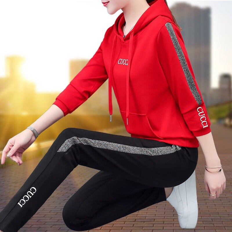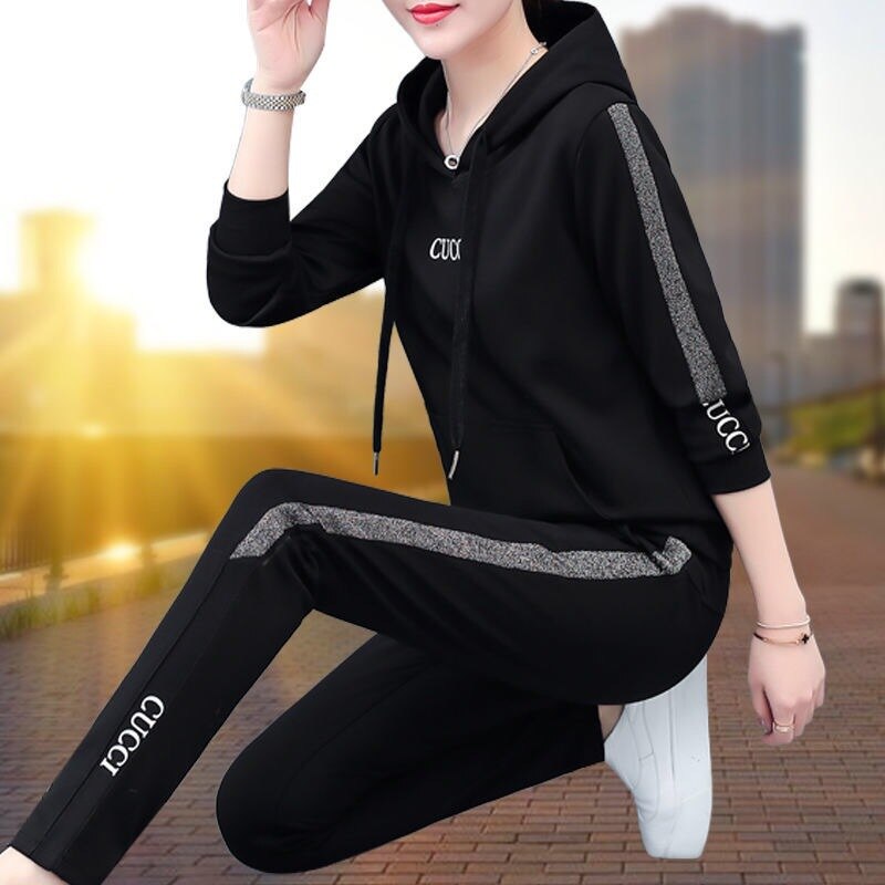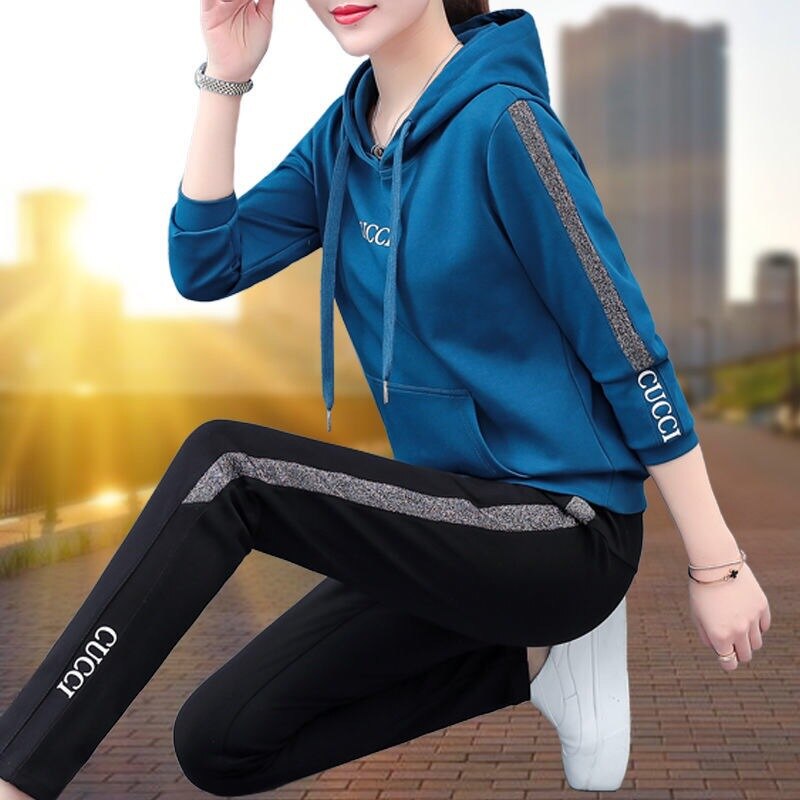 Mode Vrije Tijd Sport Pak Lente En Herfst Hooded Sweater Vrouwen Ins Twee Stuk Grote Maat Losse Koreaanse Lente Kleding