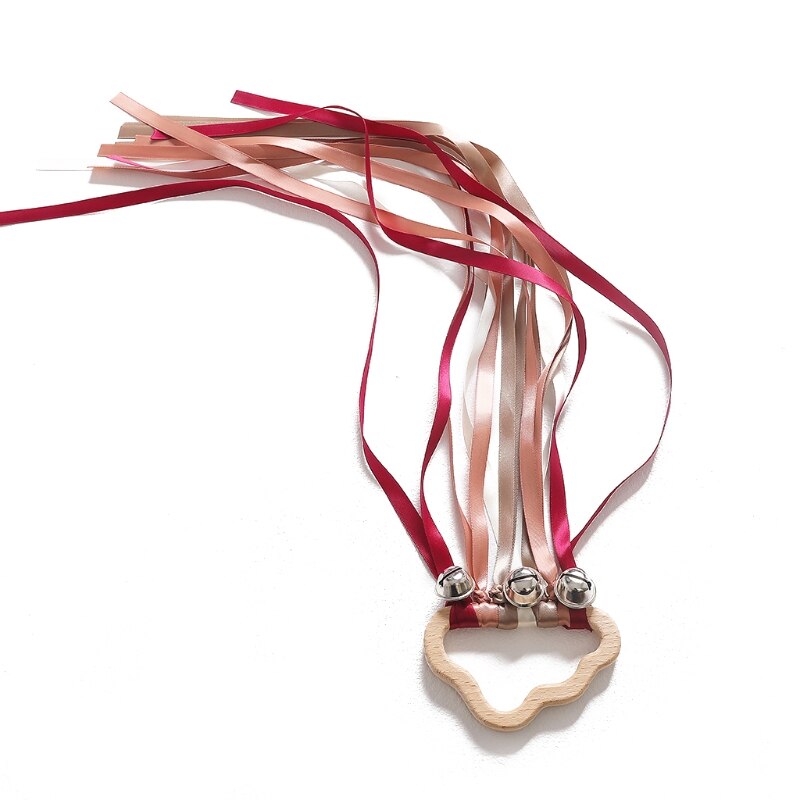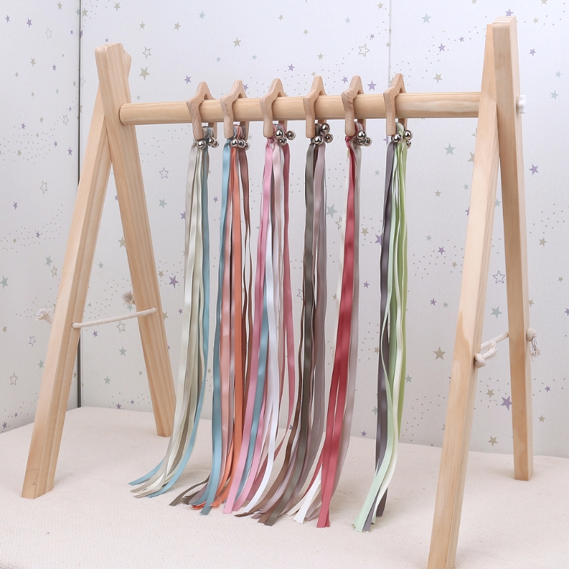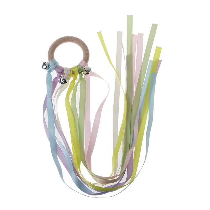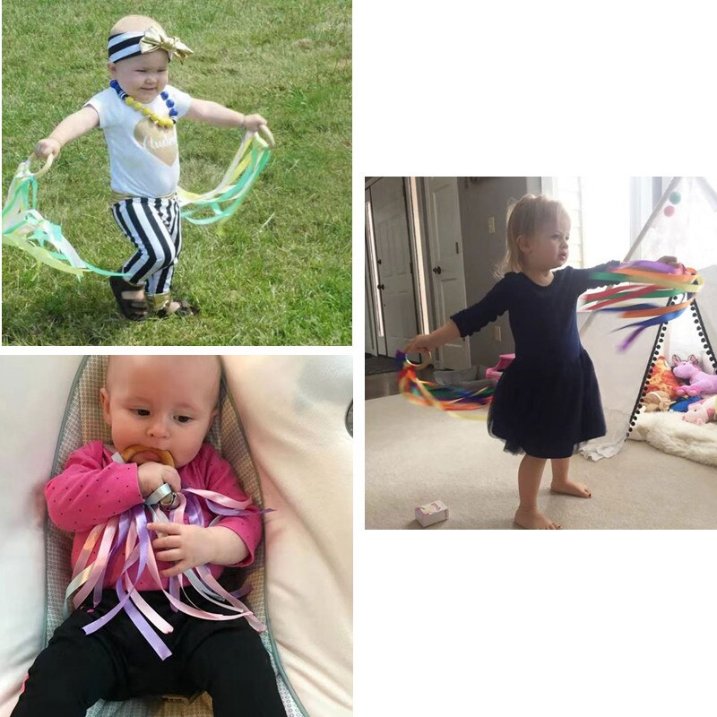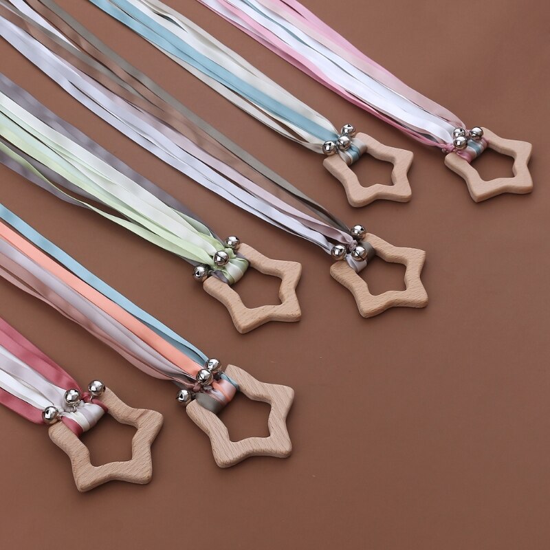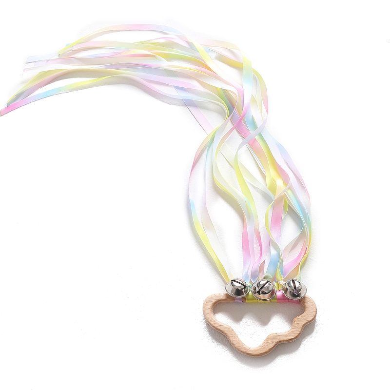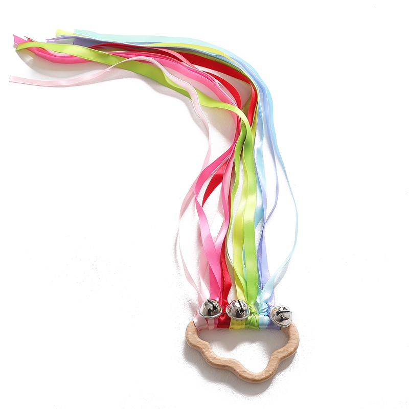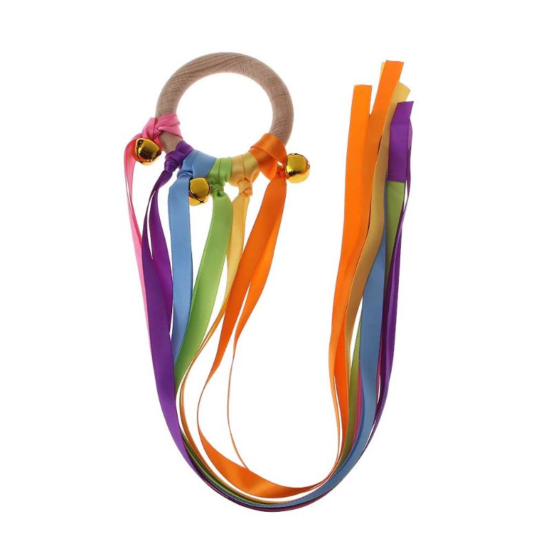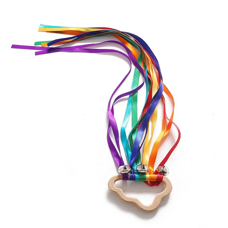 Montessori Houten Regenboog Lint Rammelaar Hand Kite Speelgoed Baby Ontwikkelen Gehoor Erkenning Zintuiglijke Douche
