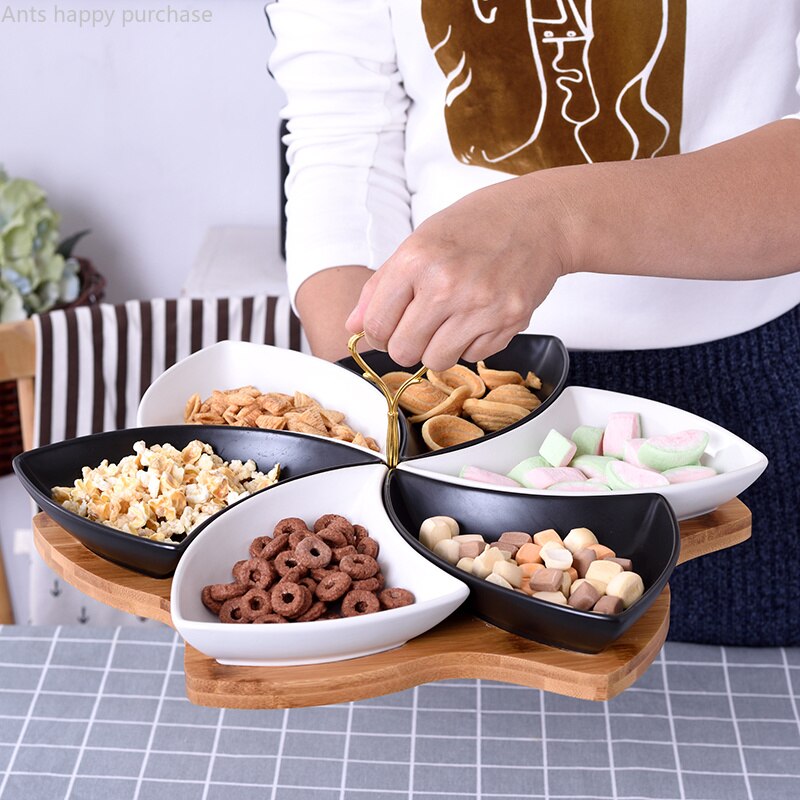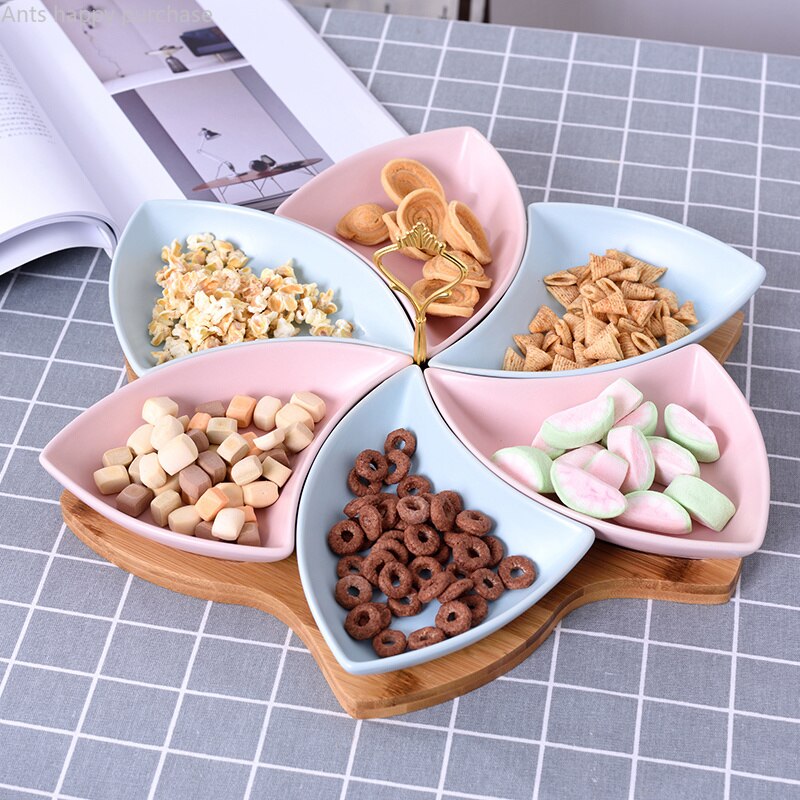 Multifunctionele keramiek Fruitschaal dessert Dessert Dienblad Plaat Snack Schotel 6 Compartimenten Creatieve Home Decoratie trinket dish