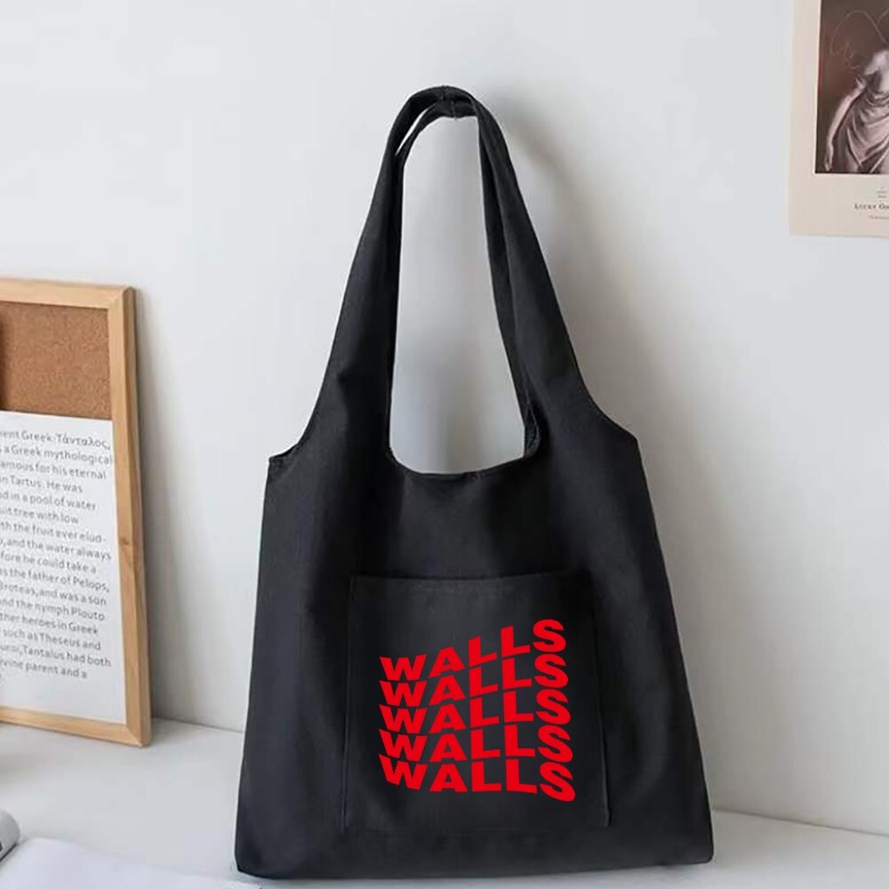 Trendy Boodschappentassen Opvouwbare Dames Canvas Schoudertassen Muren Gedrukt Student Shopper Tassen Travel Totes Werk Handtas: 5Walls013