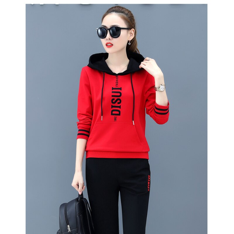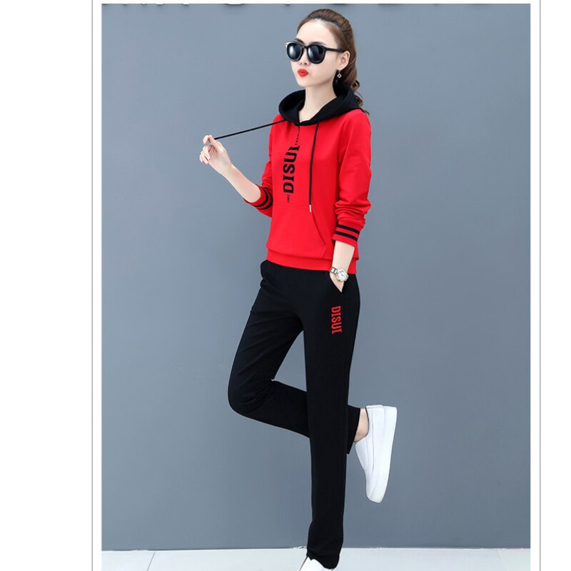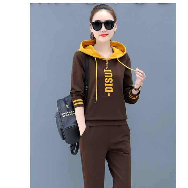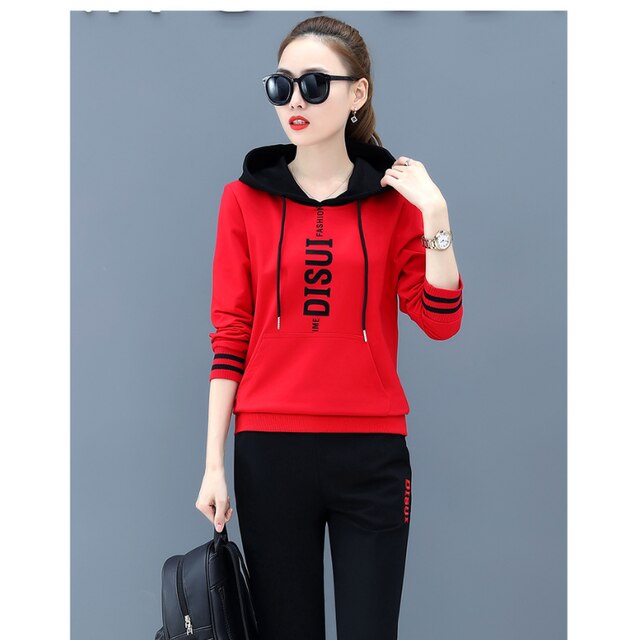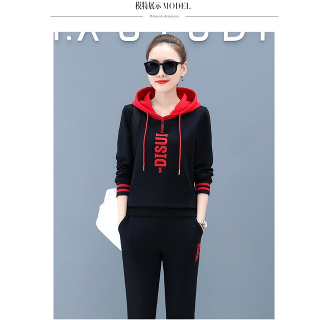 Vrouwen Winter Mode Splicing Leisure Outdoor Running Warm Sport Pak Contrast Streep Hooded Trui Fitness 2 Stuk set