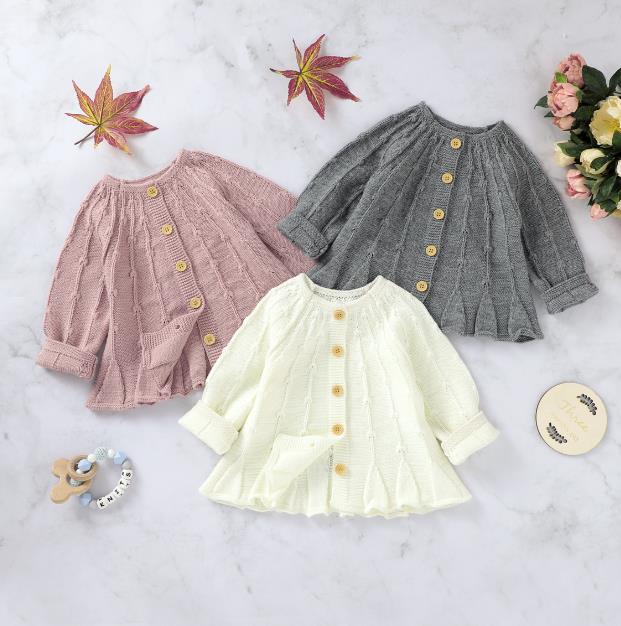 Winter Baby Meisje Gebreid Vest Eenvoudige Effen Kleur Lange Mouw Losse Versie Kleding Baby Warm Truien 0-24M