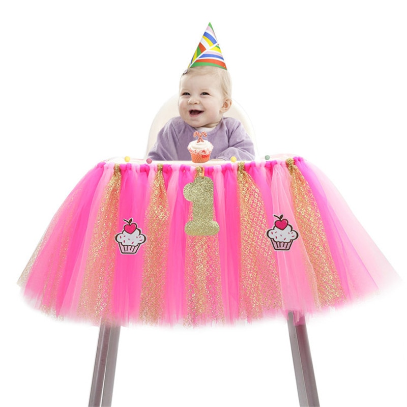 Baby Sparkle Tulle Hoge Stoel Rok Eerste Verjaardagstaart Smash Tutu Banner Decoratie Meisjes Patchwork Kleur Party Achtergrond Decor
