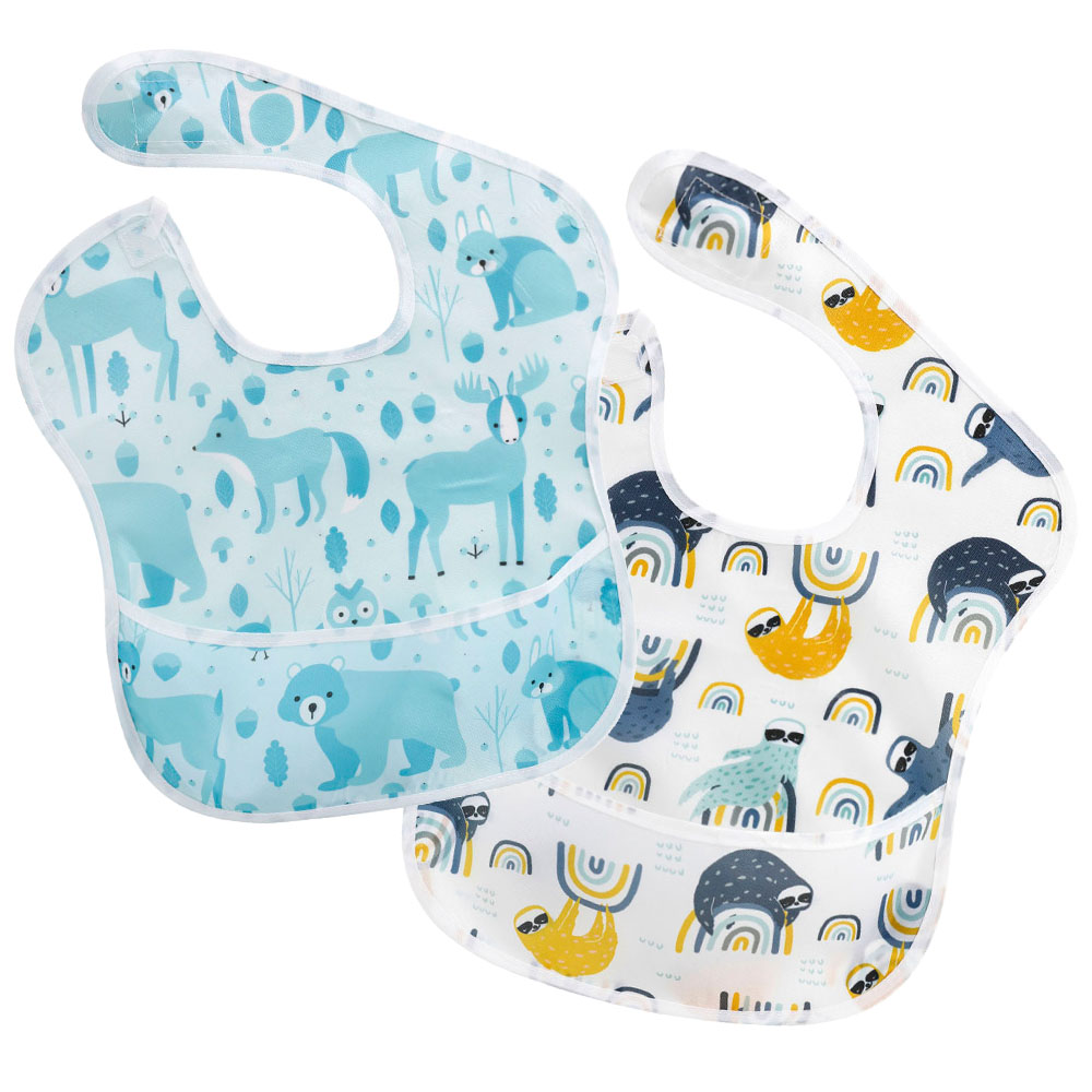 2 Stks/partij Verstelbare Slabbers Tpu Waterdichte Lunch Feeding Slabbetjes Baby Cartoon Voeden Doek Kinderen Baby Bandana Slabbetjes