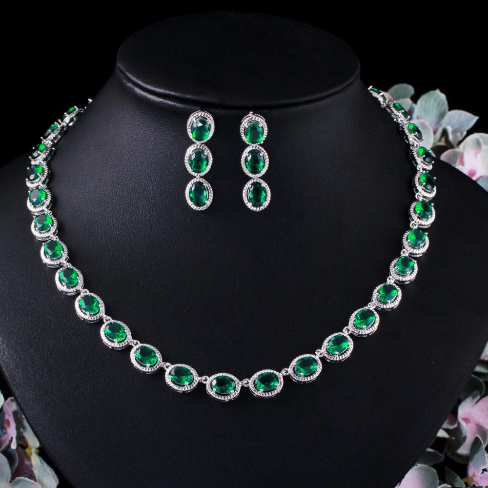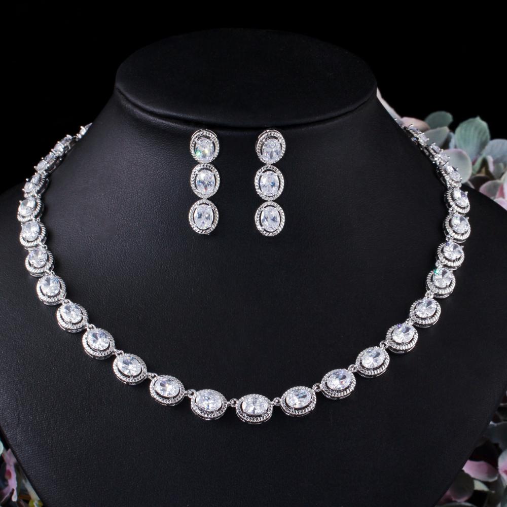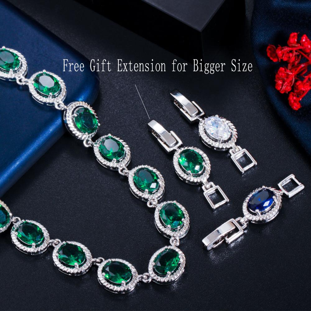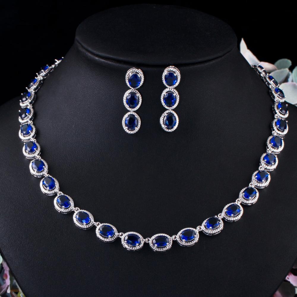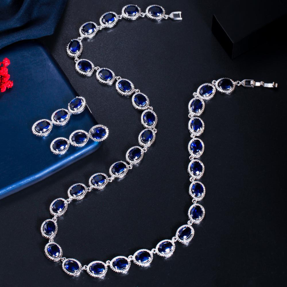 Cwwzircons Wit Goud Kleur Ronde Royal Blue Cubic Zirkoonkristal Grote Ketting En Oorbellen Sieraden Sets Voor Vrouwen Bruiloft T481