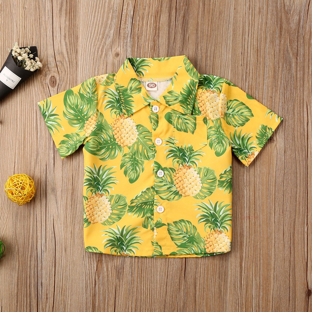 Hawaiiaanse Stijl Kinderen Jongen Strand Shirts Zomer Print Shirt Casual Button Korte Mouwen Beachwear: YELLOW / 4T