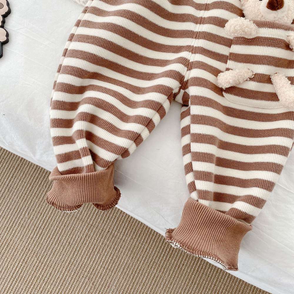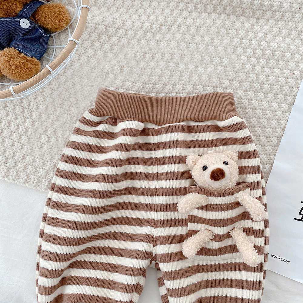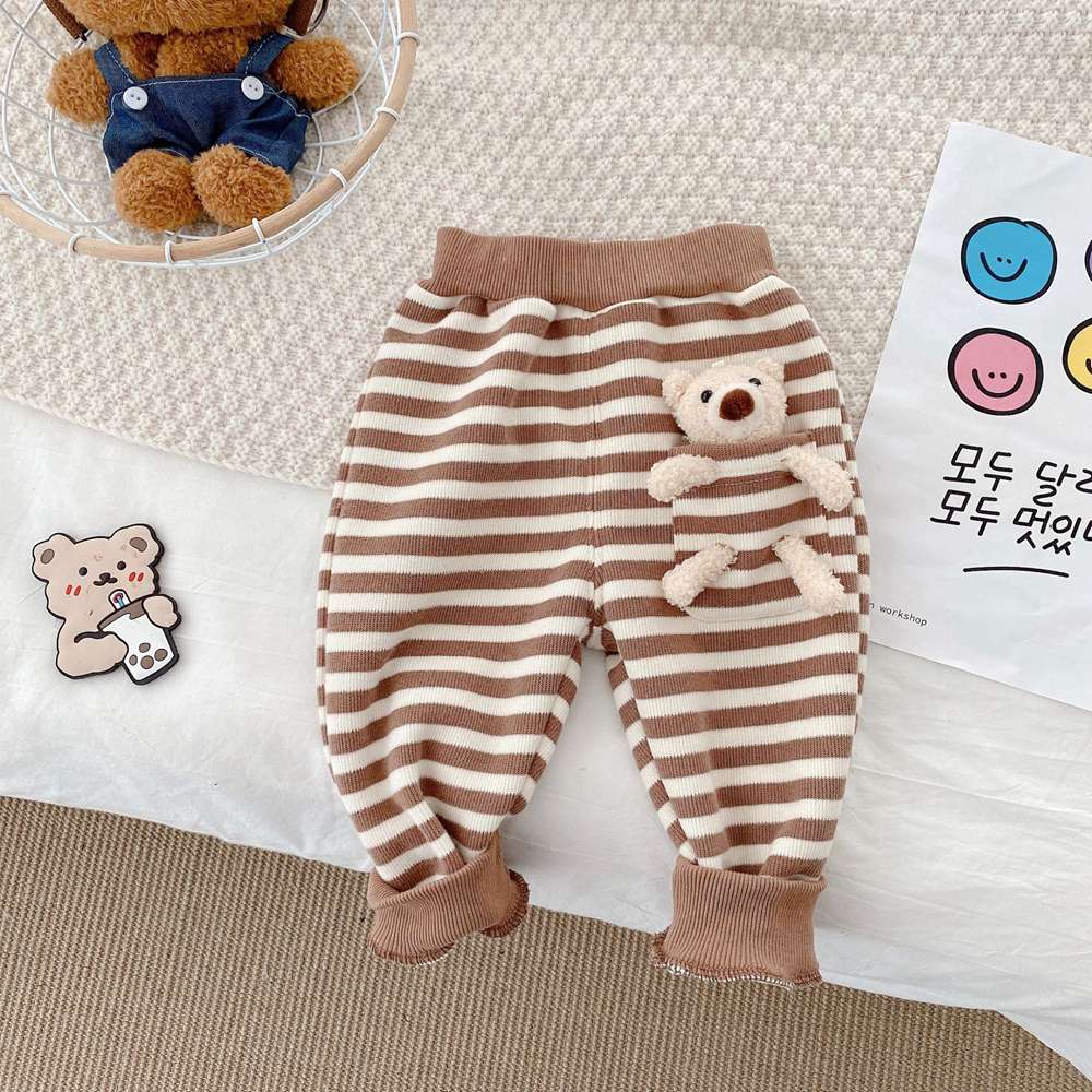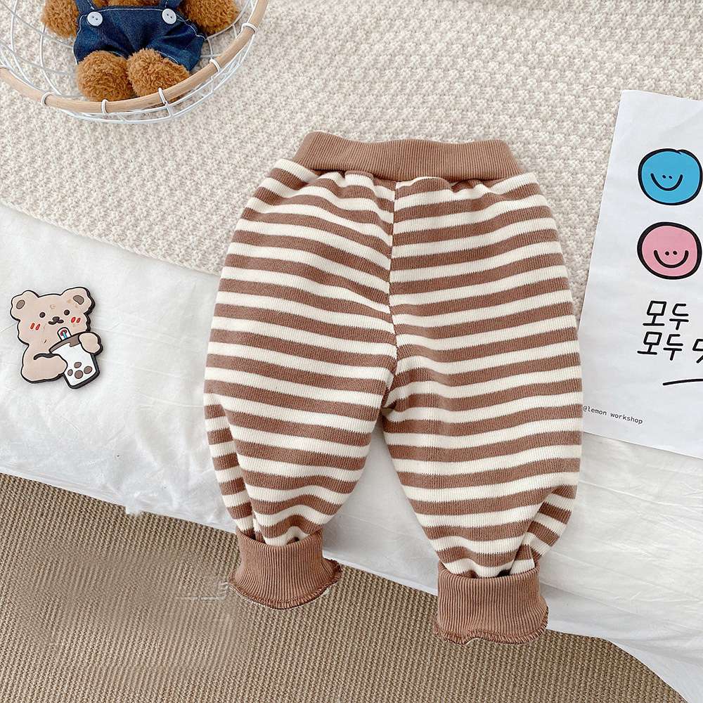 Herfst Winter Meisjes Jongens Casual Gestreepte Broek Kids Kinderen Baby Cartoon Fluwelen Pp Lange Broek ADK812