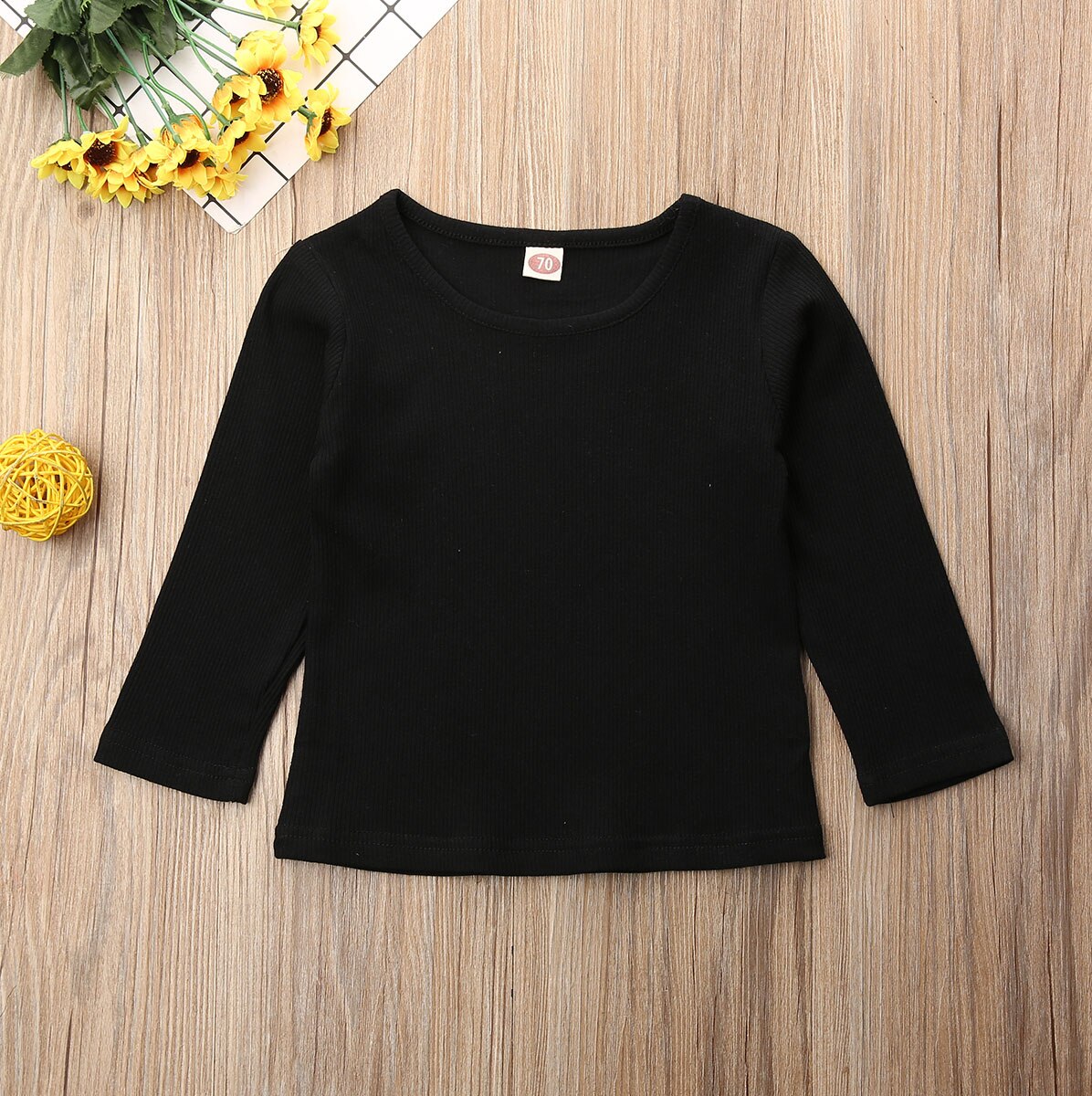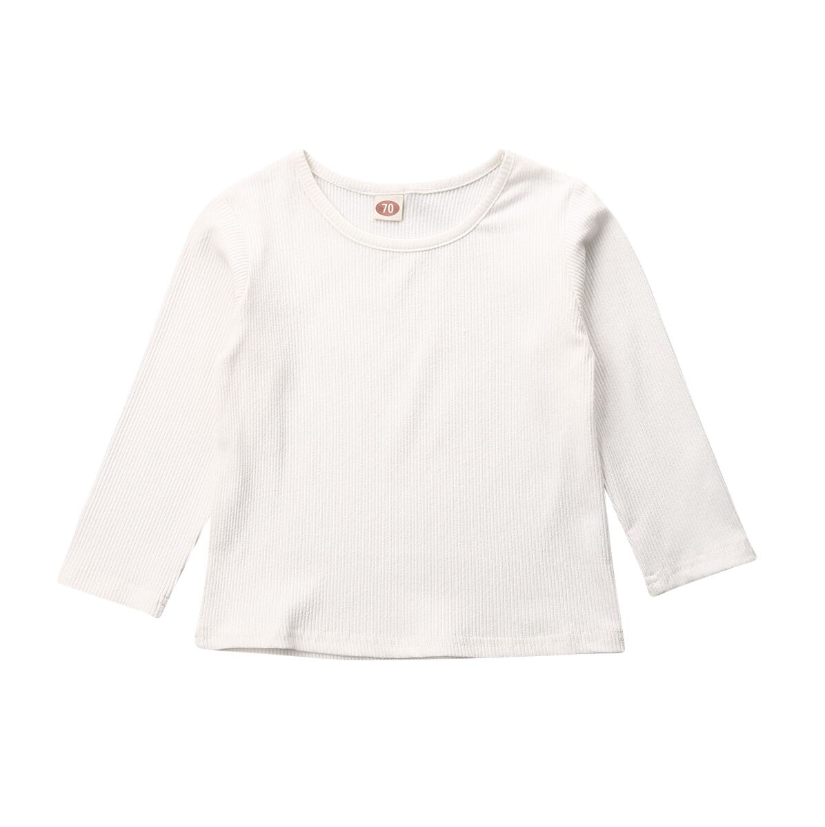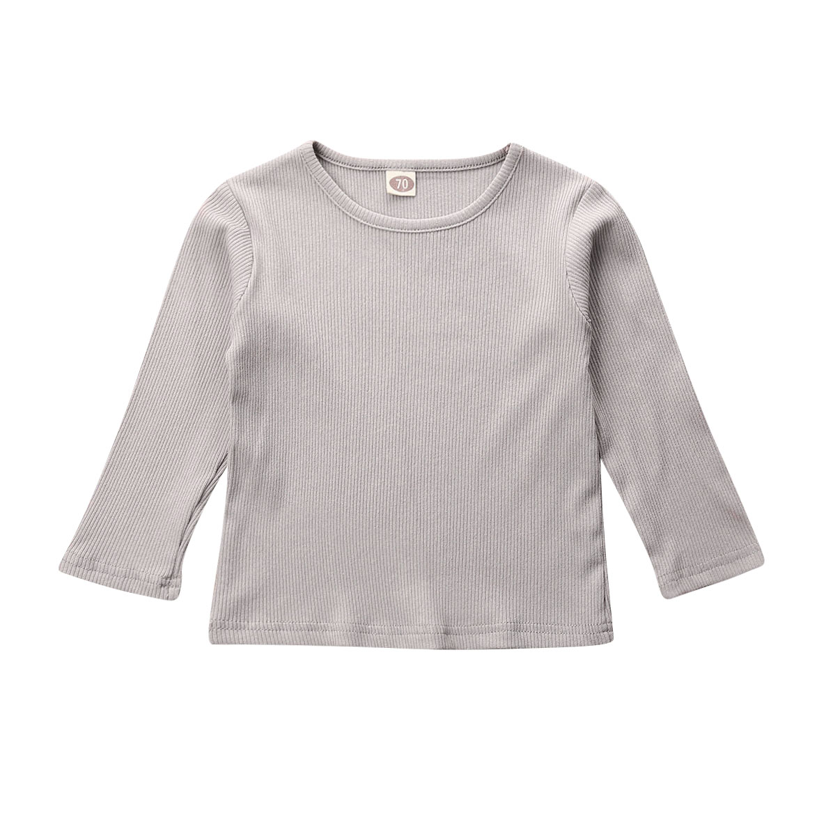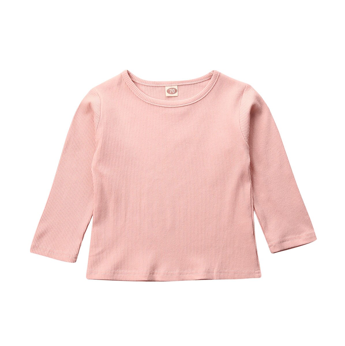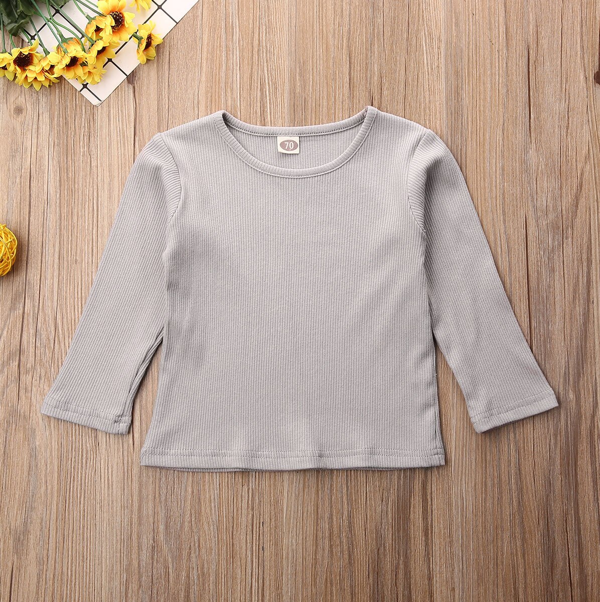 Jongens Meisjes Kinderen Pure Kleur T Shirts Herfst Newbron Gebreide Lange Mouwen Katoen Ronde Hals T-shirts Tops Tees Baby Boy kleding