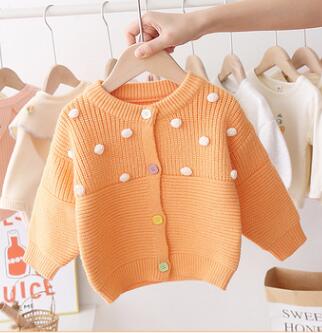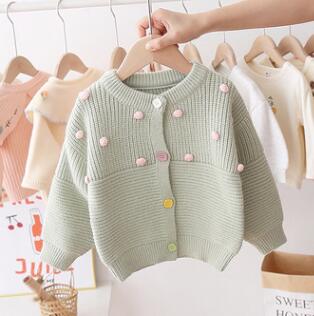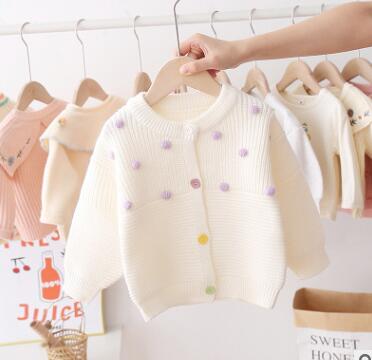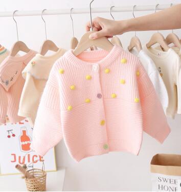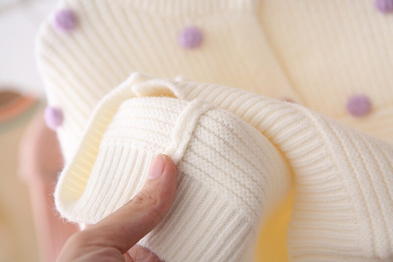 Kid Baby Meisje Gebreide Top Fall Winter Trui Vest Lange Mouwen Casual Pluche Ballen Elastische Knoppen Warm Katoen Blouse 0-5Y