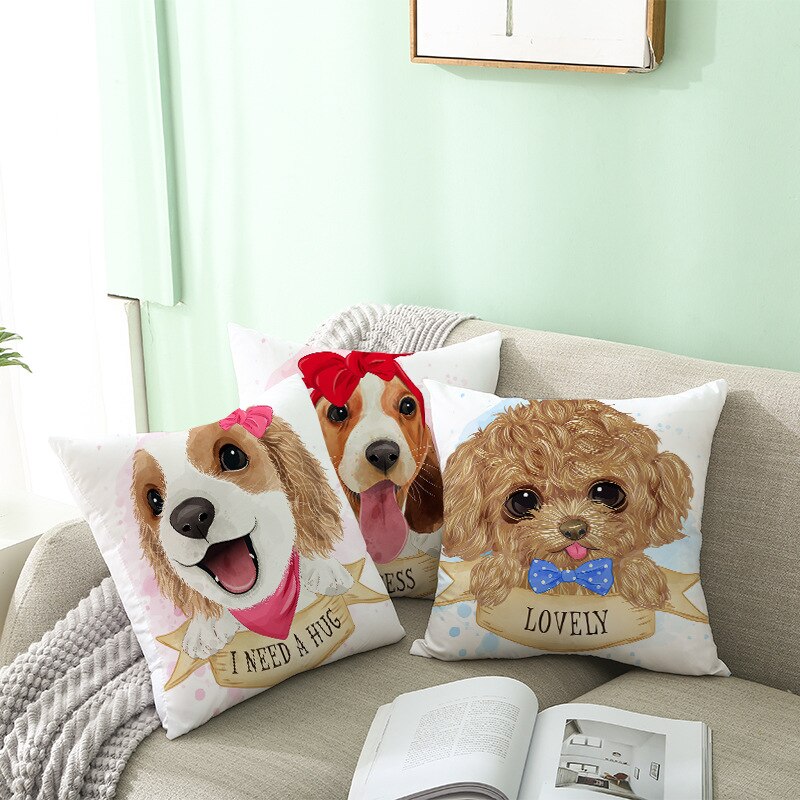 Kinderen Slaapkamer Cartoon Huisdier Boog Kussensloop Perzik Huid Fluwelen Kussen Leuke Hond Cover Sofa Kussen Cover Home Decoratieve Kussen Case: 15