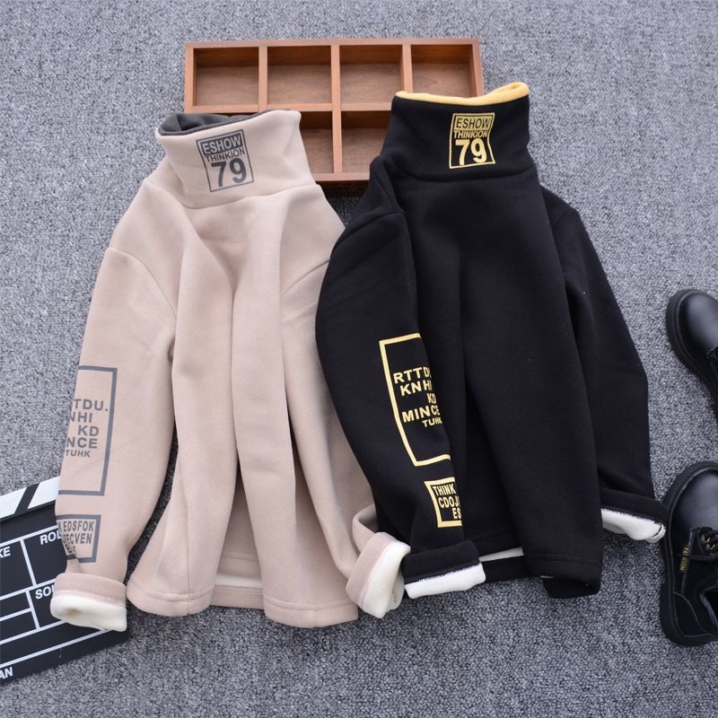 Kinderen Truien Plus Fluwelen Verdikking Jongens En Meisjes Herfst En Winter Grote Kinderen T-shirt Kinderen Dieptepunt Shirt