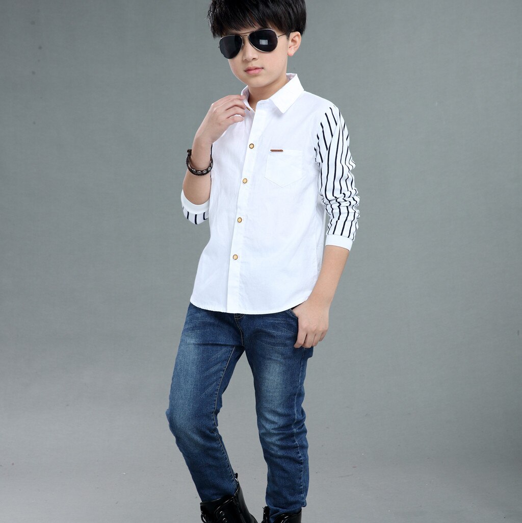 Kinderkleding 3 Tot 13 Jaar Tiener Baby Kids Jongens Lange Mouw Streep Fastener Gentleman Shirt Tops Kleding Tee shirt Enfant