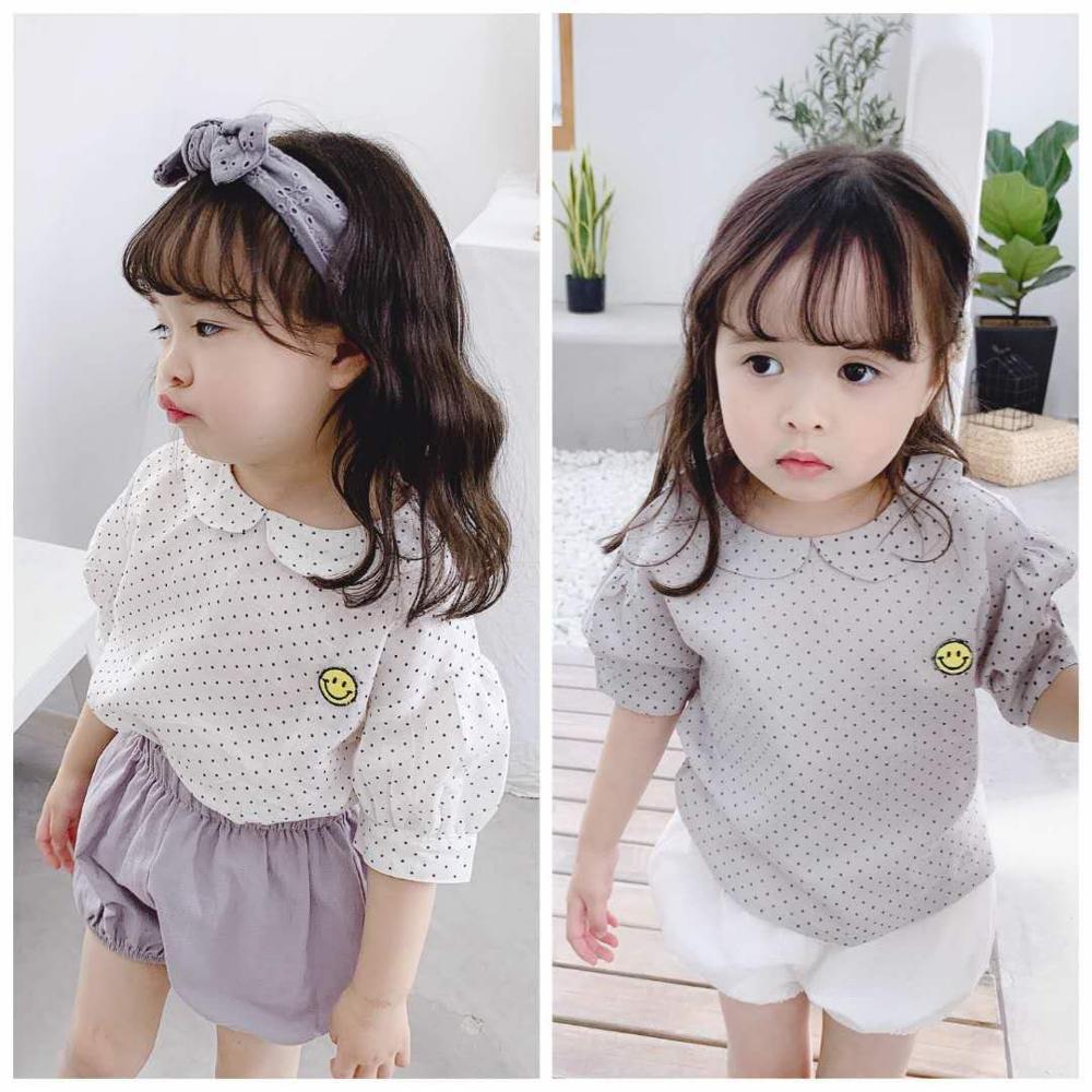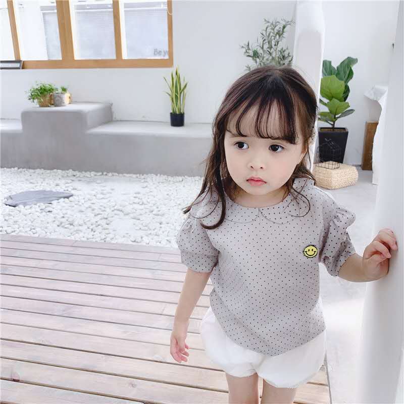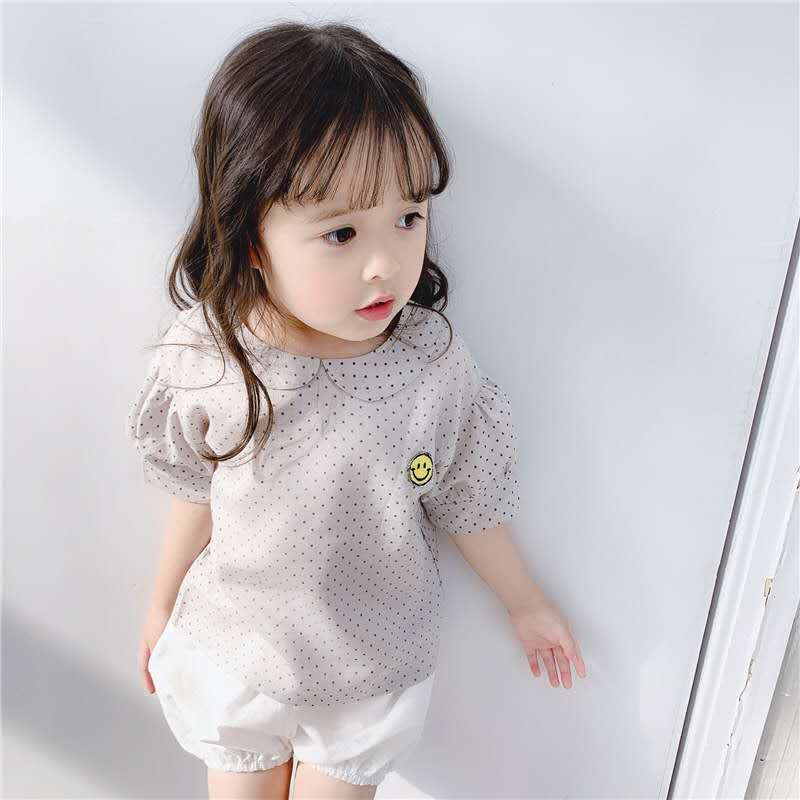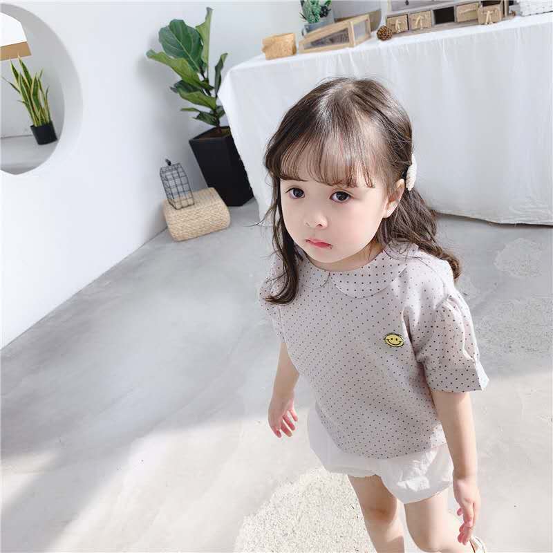 Kinderkleding Zomer Meisje Koreaanse Versie Van De Lotusblad Kraag Polka Dot Korte Mouwen Shirt
