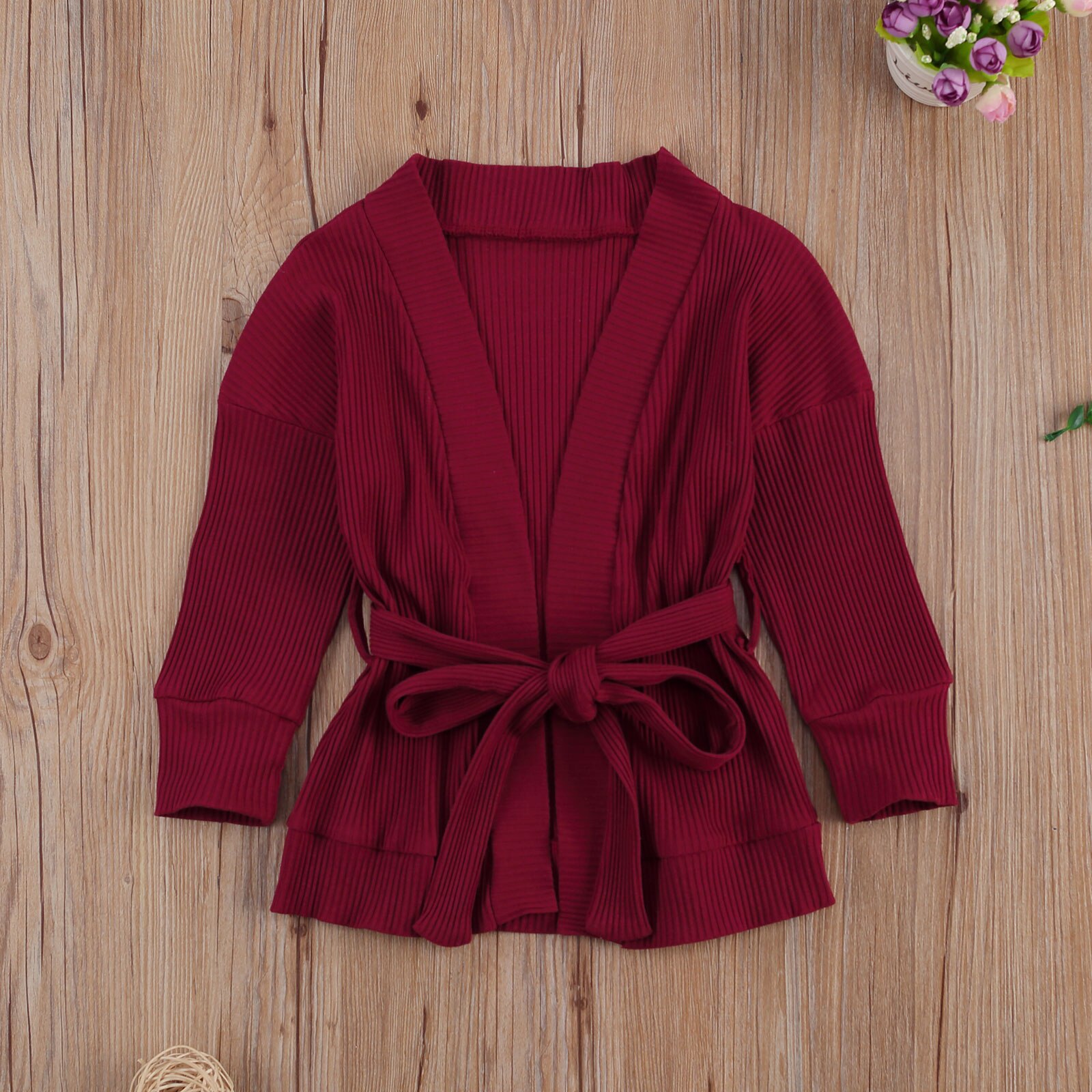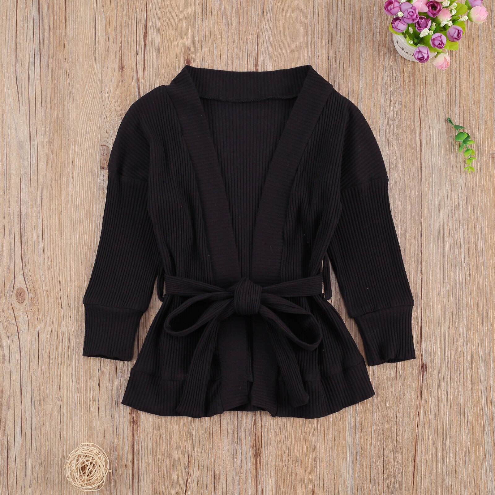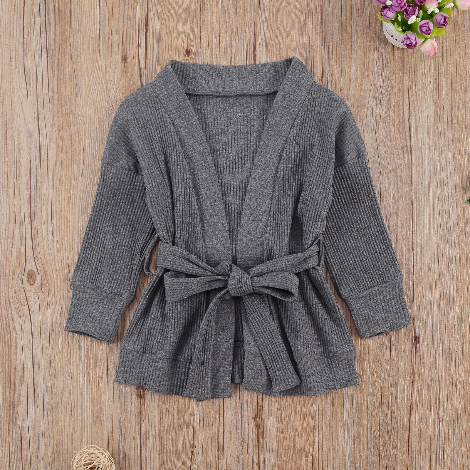 Peuter Meisjes Klassieke Vesten, off Shoulder Lange Mouwen Lace Up Taille Gekamd Katoen Gebreide Trui Jas Top Voor De Lente, Zomer