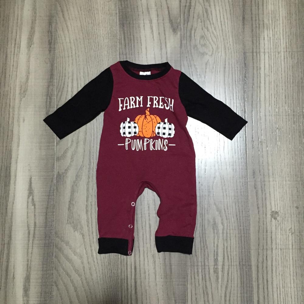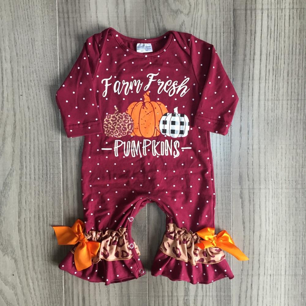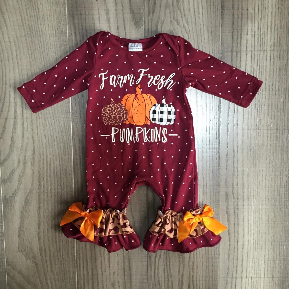 Thanksgiving Girlymax Baby Meisjes Jongens Peuter Wijn Boerderij Verse Pompoen Kleding Baby Romper Stip Katoen Romper Ruches