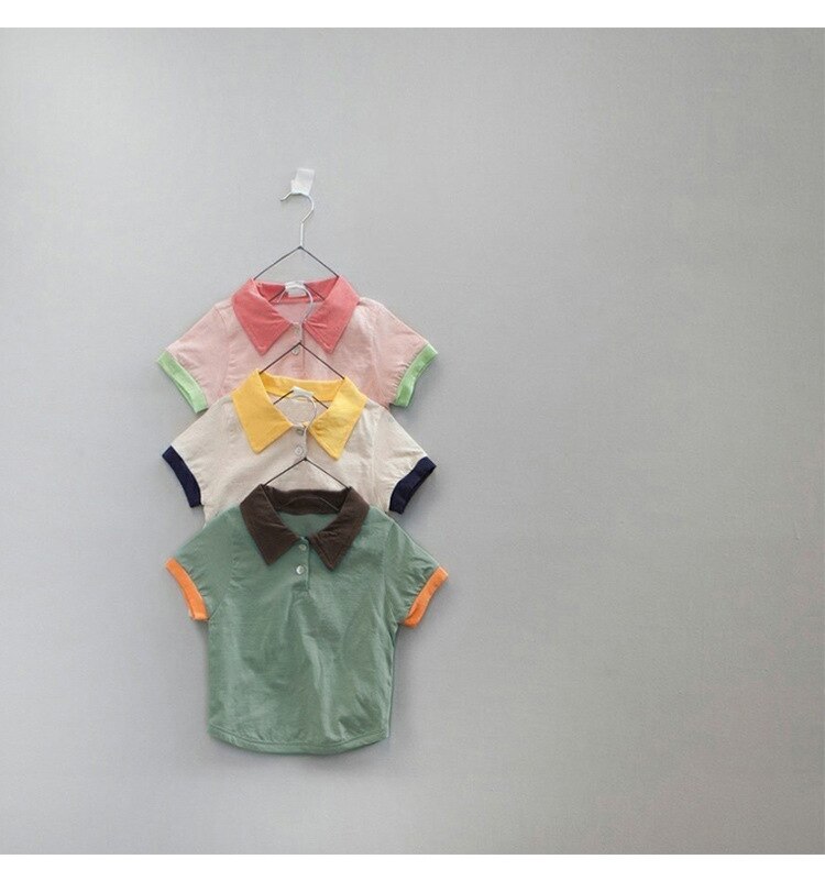 Zomer Baby Tops Peuter Baby Jongen Splicing Mode Korte Mouwen T-shirt Baby Meisje Ademend Katoenen Kleding